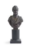 Escultura en metal pavonado a modo de busto clásico con el emperador con los laureles de Cesar y el collar del toisón de oro.