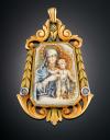 Realizada en oro amarillo 18 K, lacado, con medalla central. Diseñado por el joyero Catalán FUSET IGRAU