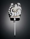 Realizado en oro blanco de 18 K, formado por bandas de diamantes talla 8/8, remata con un diamante talla brillante con peso total aproximado de 2.30 cts, con valores estimados de color y pureza: G -H /SI1-SI2. Diseño años 50.