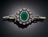 ALFILER ESTILO ANTIGUO CON ÁGATA VERDE Y DIAMANTES EN ORO AMARILLO DE 18 K, TALLA FRANCESA Y PLATA