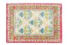 Alfombra Cuenca en lana con decoración de motivos zoomorfos y vegetales estilizados sobre campo beige con cenefa en color carmesí.