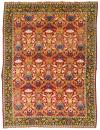 Con decoración vegetal sobre campo granate y cenefa con motivos vegetales estilizados.