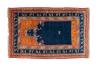 Campo en azul y naranja y cenefas con motivos vegetales. S. XX