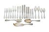 Formada por 12 cucharas de mesa, 12 tenedores de mesa, 12 cuchillos de mesa, 12 tenedores de pescado, 12 palas de pescado, 12 cucharas de postre, 12 tenedores de postre, 12 cuchillos de postre, 12 palas de mantequilla y 3 piezas de servir.