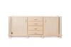 Aparador en mimbre pintado en blanco. Cuatro registros de cajones y dos puertas laterales.