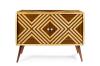 Estructura en madera con acabado en madera chapada con frontal de rombos, dos puertas frontales y balda al interior.
