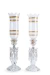 Decoración de prismas colgantes y briseras con detalles grabados y decoraciones en dorado.