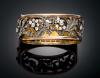 Realizado en oro amarillo de 18 k con vistas en plata, diseño rígido, calado con motivo vegetal en forma de ramas en movimiento con diamantes en talla antigua con un peso total aproximado de 2,50 cts. Faltan cinco pequeños diamantes. Cierre en caja con cadena de seguridad.