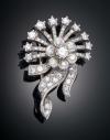 BROCHE ABANICO CON DISEÑO FLORAL Y DIAMANTES EN ORO BLANCO DE 18 K