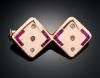 Realizado en oro rosa de 18 k, motivo en rombos con pequeños diamantes y rubíes.