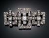 Realizado sobre montura de oro amarillo de 18 k  y vistas en plata con diseño geométrico de lineas cuadradas y rectangulares creando una estructura simétrica con diamantes talla antigua.