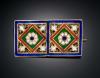 Realizado en oro de 18 k, motivo compuestos por dos cuadrados semejando una baldosa, calado en esmalte.