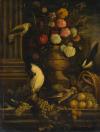 ESCUELA ITALIANA. Primera mitad del siglo XVIII - Bodegón con flores, frutas y aves
