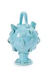 Botijo en cerámica de Manises vidriado en azul con aplicaciones de hojas y flores, ff. S. XIX.