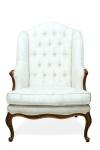 Butaca estilo Luis XV en madera, tapicería capitoné en beige