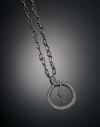 Realizada en plata, diseño formado por cadena labrada artesanalmente, con colgante motivo serpiente enroscada, cuajada de diamantes talla antigua engastados en pavé. Ojo de diamante negro. Remata en su cola con un diamante en forma de estrella.