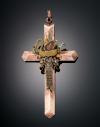 Realizado en oro de 9 k, con motivo de cisne que envuelve la cruz, perlas aljófar, y motivos florales.