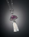 COLGANTE EN VARIOS CUERPOS CON DIAMANTES, PIEDRA DE COLOR CON RELIEVE FLORAL Y TERMINADO POR CINTAS DE PERLAS