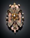 Colgante relicario guardapelo Alfonsino de finales del siglo S. XIX. Realizado en Oro bajo, plata y perla alfojar.