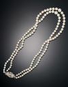 Collar formado por 138 perlitas calibradas en 4,00 mm y 7,50 mm, dispuestas en disminución en dos hilos, broche en motivo vegetal con diamantes talla 8/8 engastados en grano, en oro amarillo de 18 k con vistas en oro blanco de 18 k. Cierre en caja.