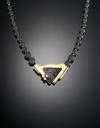 Realizado en oro amarillo de 18 K, con cuentas en disminución de lava volcánica, diamantes y piedra central meteorito.