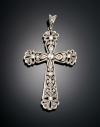 Realizada en oro amarillo con vistas en oro blanco, ambos en 18 k, diseño de cruz calada con detalles en formas florales con diamantes talla antigua, un peso total aproximado de 0,50 cts.