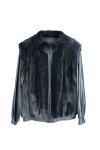 Chaqueta en visón marrón y mangas en cuero negro.