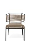 Silla modelo "Fifty" estructura metálica en negro y tapizado de cuerdas color tabaco