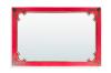 Decorativo espejo con marco en madera tallada y pintada en rojo con detalles en dorado.