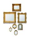 Decorativo lote de 9 marcos con espejo en madera tallada y dorada. Diferentes formas y decoración.