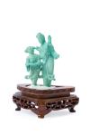 Grupo en turquesa exquisitamente tallado sobre peana de madera.