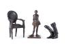 Lote formado por tres pequeños bronces pavonados, una bailarina, unas botas y una butaca.