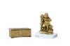 Lote formado por caja de estilo renacentista y escultura de niños mendigos.