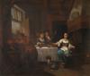JAN MIENSE MOLENAER (1610, Haarlem - 1668, Haarlem) . Hacia 1610 - Escena costumbrista en interior de vivienda flamenca