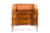 Escritorio italiano en madera de nogal con decoración de marquetería en limoncillo de motivos clásicos.
