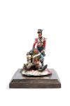 Escultura en bronce pintado representando a dos soldados franceses heridos en la batalla de Waterloo.