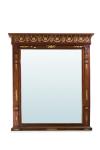 Espejo de pared con marco de estilo Imperio en madera de caoba con aplicaciones en bronce dorado con decoración de palmetas, guirnaldas y rosetones florales.