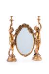 Espejo de sobremesa oval rematado por orla de flores y sostenido por dos figuras de "putti" a modo de candeleros.