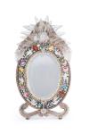 Espejo oval de tocador en madera y vidrio de Murano con orla de micromosaico, trabajo veneciano.