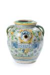 Gran ánfora de farmacia en cerámica esmaltada, Italia, ca. 1900