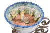 Gran lebrillo en cerámica esmaltada y vidriada de Talavera. Firmado y fechado en el año 2000. Con originales placas en el campo de soldados de los Tercios de Flandes y el capitán orando al Cristo resucitado. Arcadas de medio punto en la pared exterior.