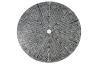 Tapa con incurstaciones de hueso de motivos vegetales dispuestos radialmente, apoya sobre pie central en madera lacada en negro.