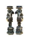 Gran pareja de "Morettos" en madera tallada, ebonizada, pintada con detalles en dorado, finales S. XIX.