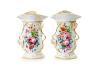 Gran pareja de jarrones isabelinos en porcelana con decoración esmaltada de flores y detalles en dorado. S. XIX.