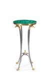 Tapa en malaquita sobre pie de trípode con aplicaciones de bronce dorado.