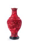 Jarrón en laca roja cinabrio, China, mediados s. XX.