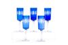 Juego de 5 copas en cristal centroeuropeo tallado en color azul cobalto y en su color.