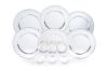Juego de 6 bajoplatos y 6 platitos de pan en plateado, perímetro de contario de perlas.