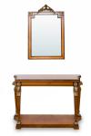 Juego de consola y espejo estilo imperio en madera de nogal y roble