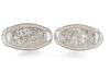 Juego de dos bandejas ovales antiguas en metal plateado con esquinas achaflanadas con campo bellamente cincelado representado escenas de la mitología nórdica.